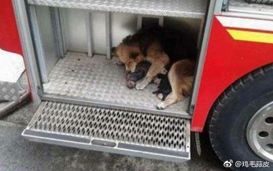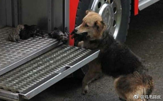 【狗狗闯进大火叼出一坨东西,消防员发现后只剩下沉默。 】故事发生在智利,当时,当地的一栋住宅失火,并牵连到附近居民的房屋,消防员及时赶到并成功遏制了火灾,幸好,除了房东受了点轻伤,其他人员安然无恙。 就当消防员准备撤回去的时候,发现了这样一幕:一只狗狗急匆匆的从火场里出来,嘴里叼着一坨东西,仔细一看,才发现那些都是还未睁眼的小狗。 母狗一次又一次往返在火灾现场和消防车之间,一只一只叼着自己的孩子放在消防车上面,它的身体已经被烧得漆黑一片,可它似乎感觉不到痛,依然顽强的拯救自己的孩子。 最后,母狗终于把自己的孩子全部安全的救出来了,自己也爬上车伸出舌头一遍又一遍的舔舐的自己的孩子,似乎在安抚它们,消防员赶紧把它们送往宠物医院救治,遗憾的是,母狗由于伤势过于严重,失去了生命,那五只小狗在母狗的保护下很安全。