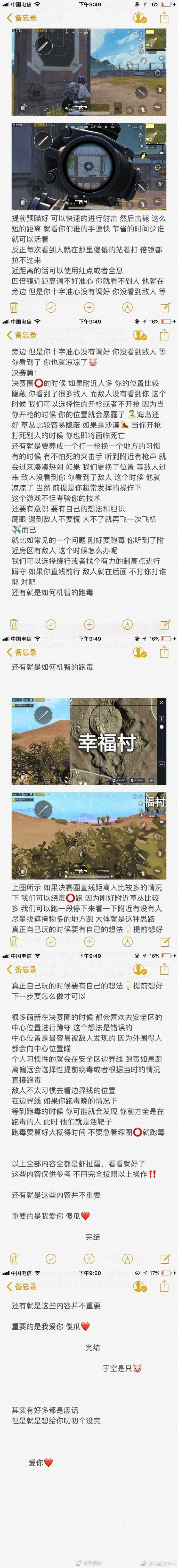 一位吃鸡网友给女友的攻略,可以说很用心了,其实最后面那句才是重点。
